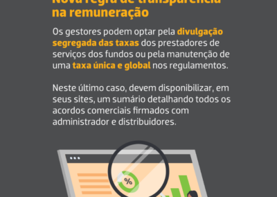 É quando entram em vigor dois marcos da Resolução CVM 175: as regras de transparência na remuneração dos prestadores de serviços de fundos e o fim do prazo de adaptação do estoque de FIDCs (Fundo de Investimento em Direitos Creditórios) à norma.